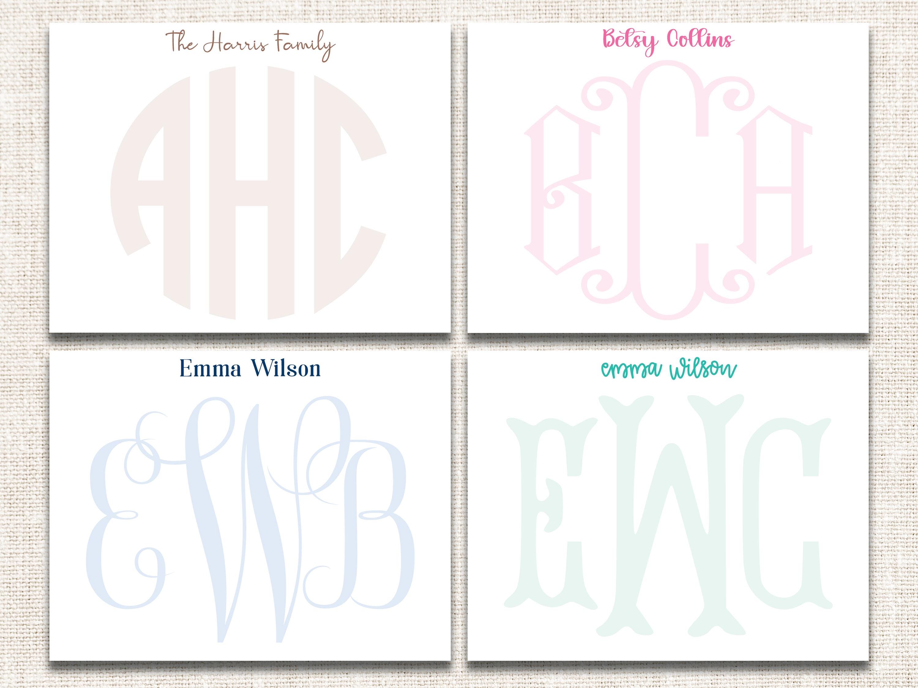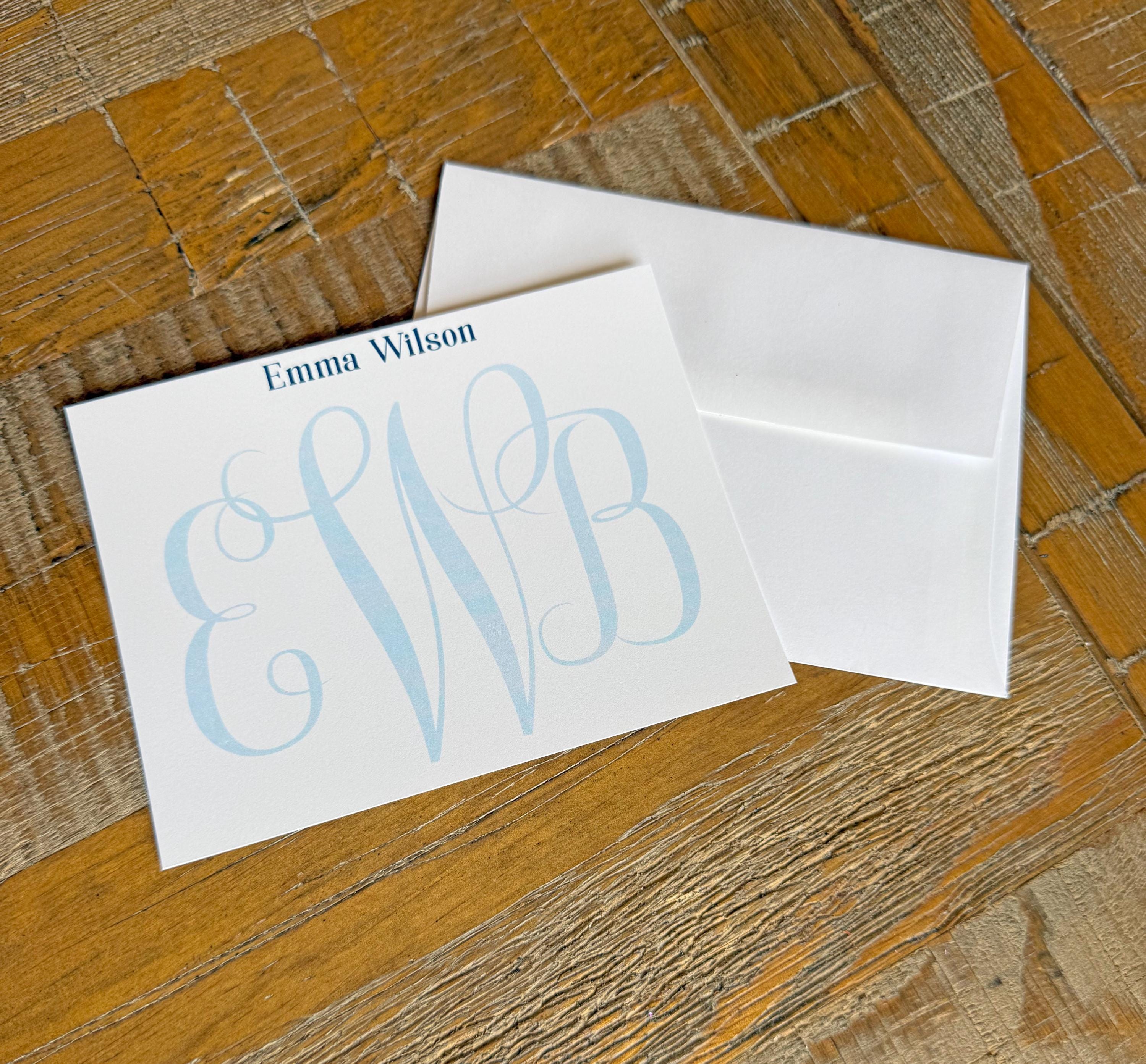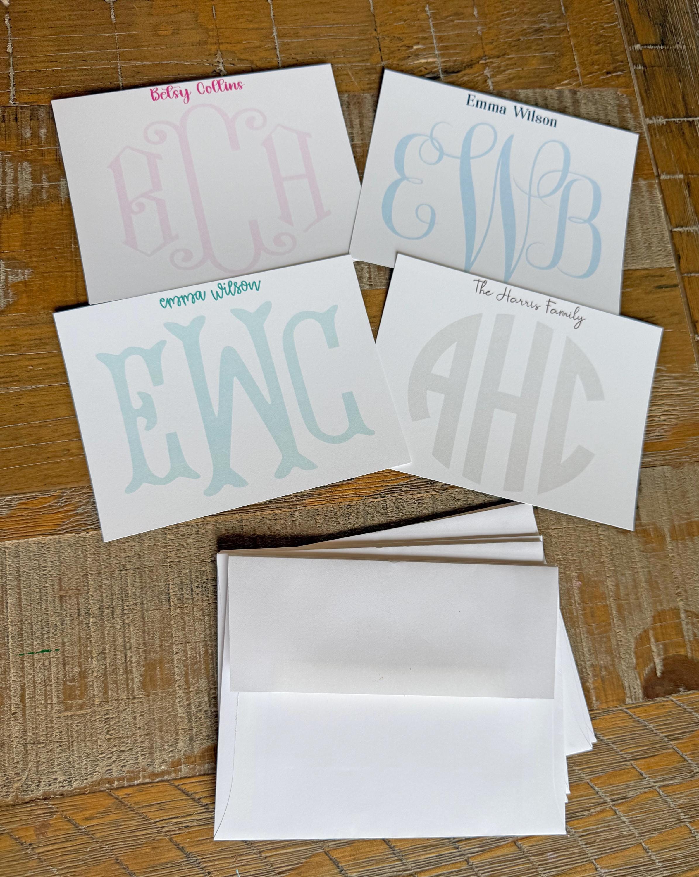 Personalized Custom Monogrammed Stationery, Monogrammed Notecards, Flat Note Cards, Preppy Stationery