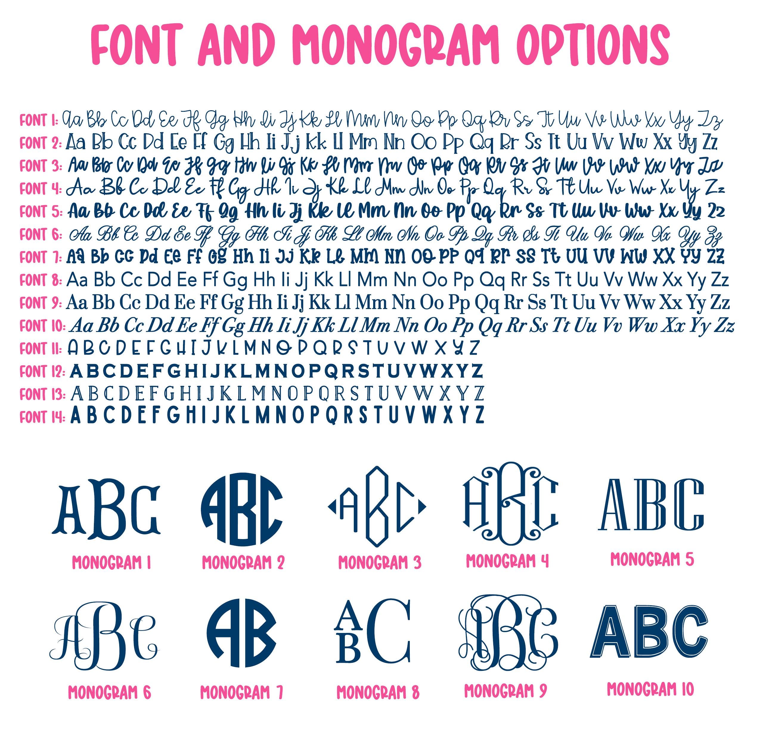 If you want to change the font or monogram style, please specify the one you want from the attached list.