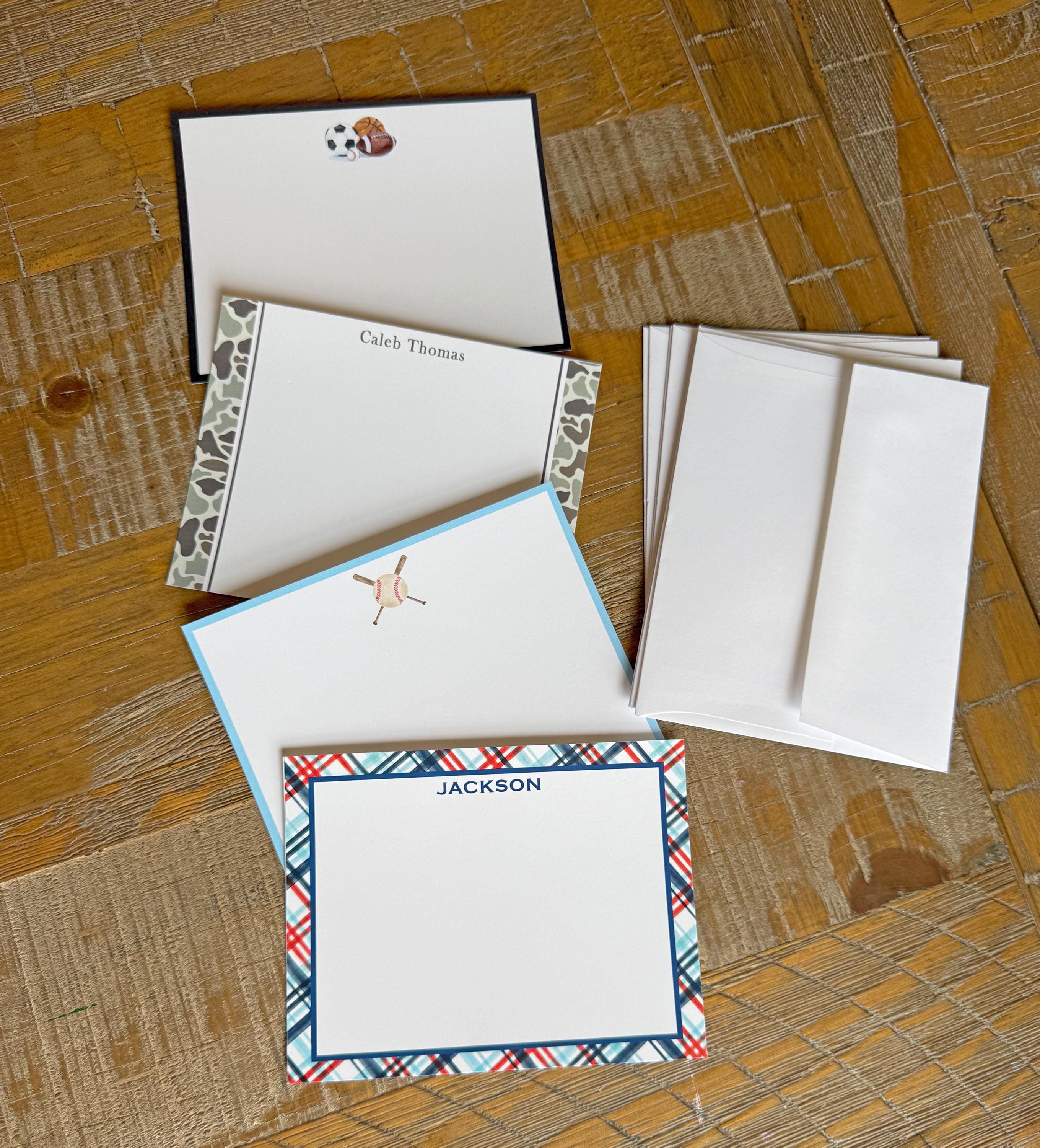 Personalized Boy Stationery, Boy Personalized Notecards, Boy Flat Note Cards, Preppy Stationery