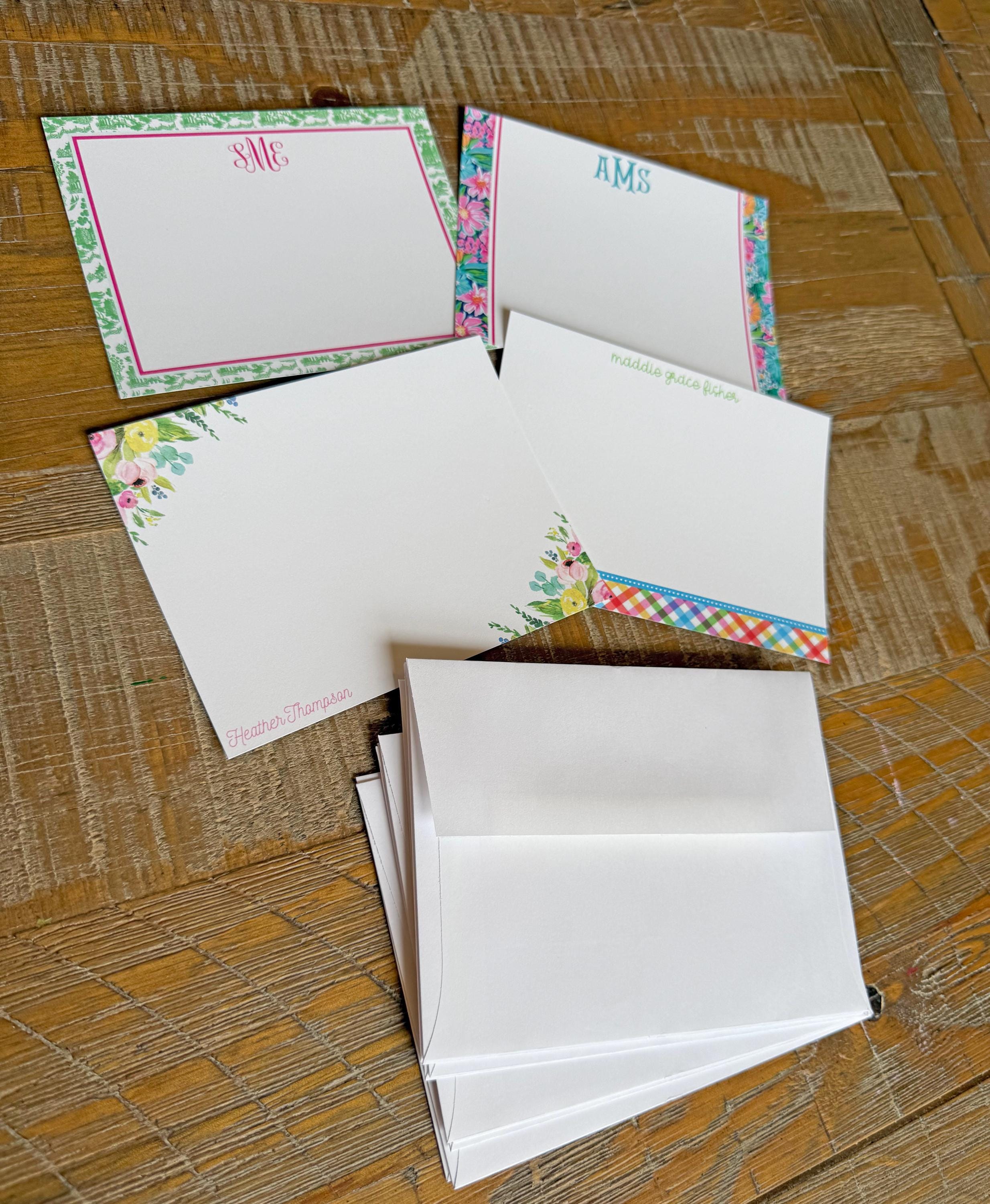Personalized Girl Stationery, Personalized Girl Notecards, Flat Note Cards, Preppy Stationery