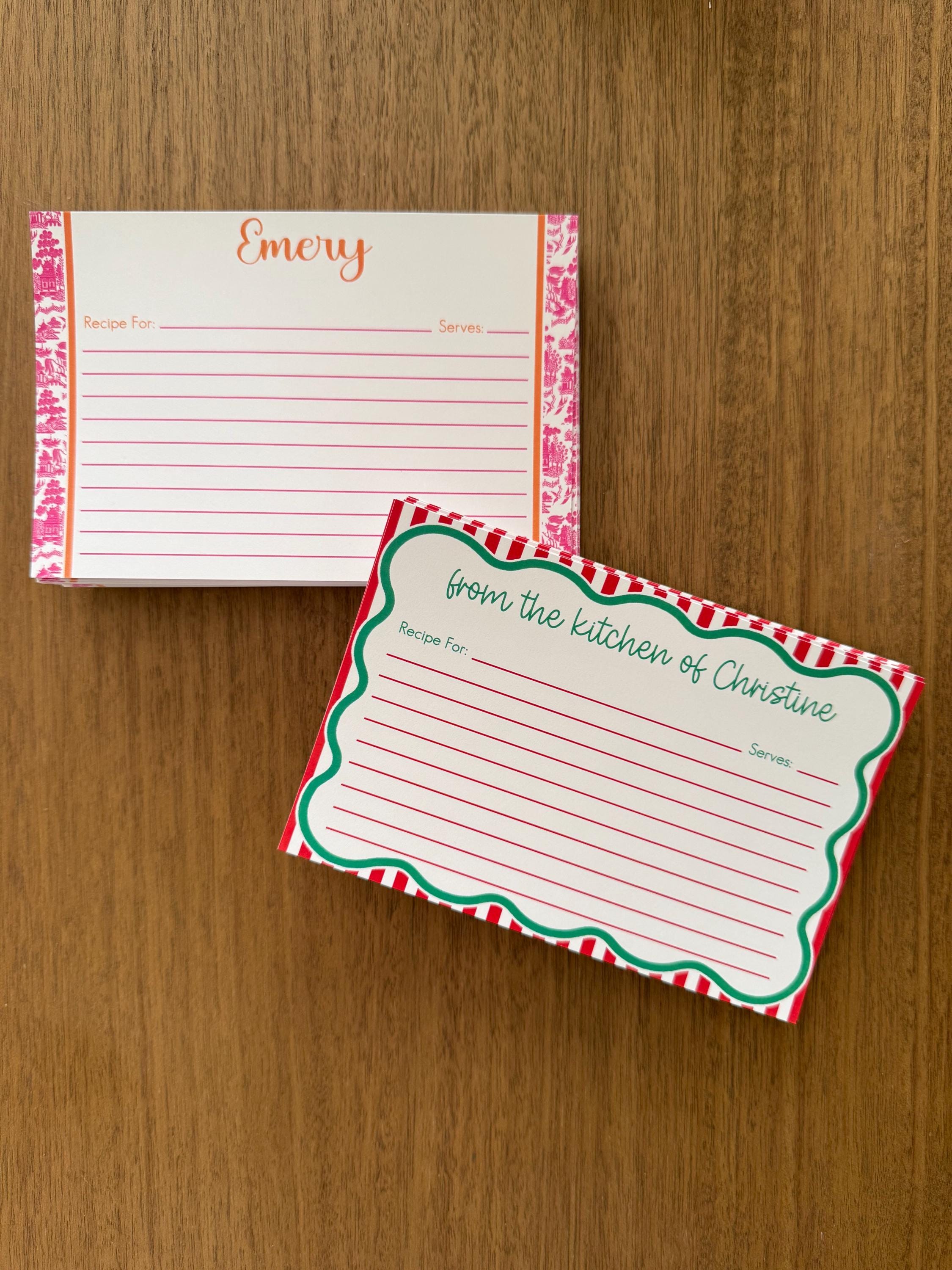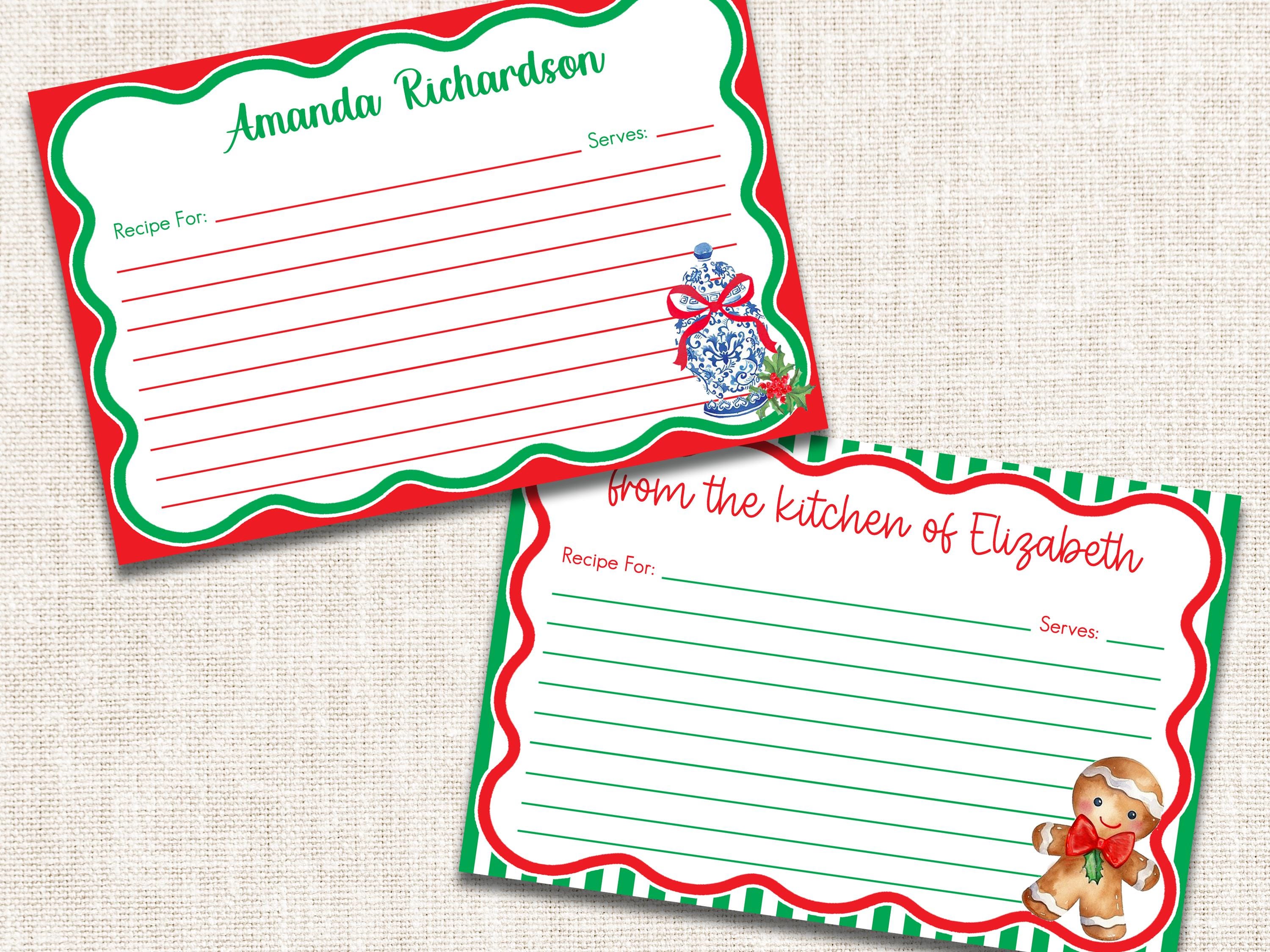 Personalized Christmas Recipe Cards, Preppy Recipe Cards, Monogrammed Recipe Cards