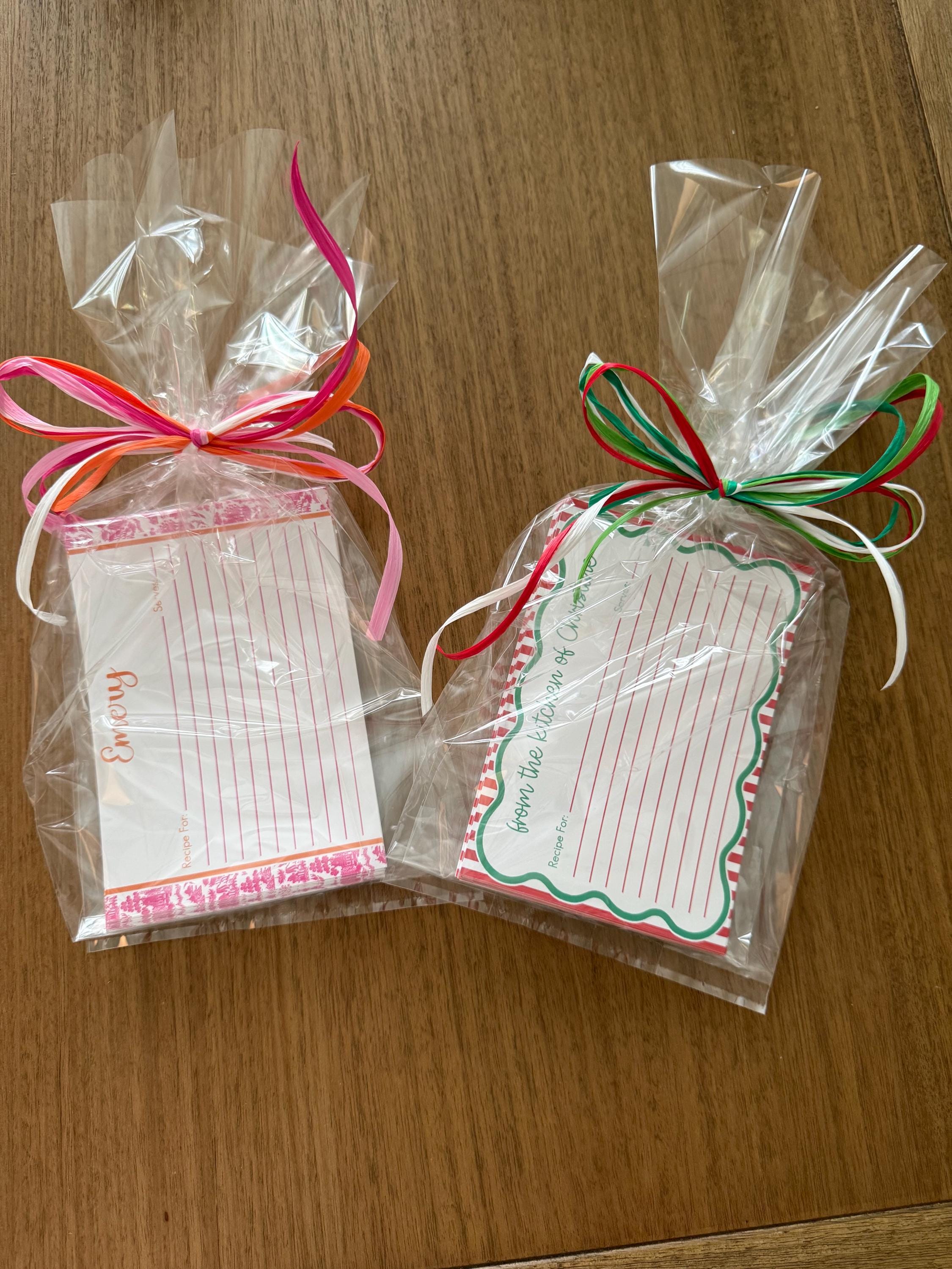 Personalized, preppy recipe cards!! These make a housewarming gift or gift for a new bride! Each set is wrapped in clear cello tied off with colorful raffia.