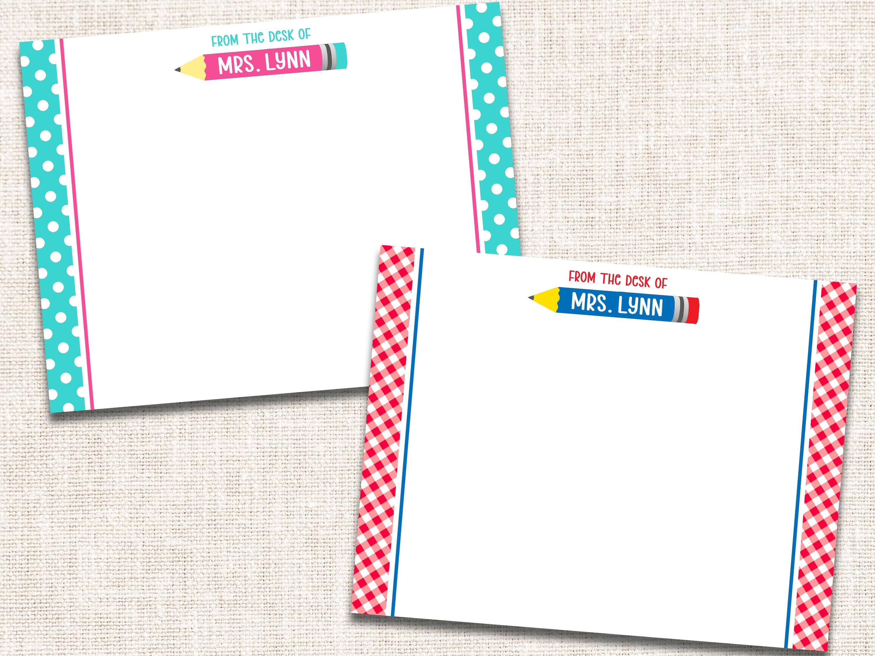 Personalized Teacher Stationery, Teacher Personalized Notecards, Preppy Stationery